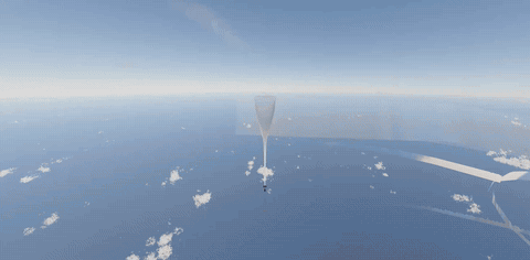 The clouds come from our own sounding data. When you load a mission, the viewer finds the nearest atmospheric profile we collected near that place and time, temperature, humidity, altitude, and uses it to figure out where the cloud layers actually were. A volumetric renderer takes it from there. The clouds seen here are a real representation of what was actually in the sky.